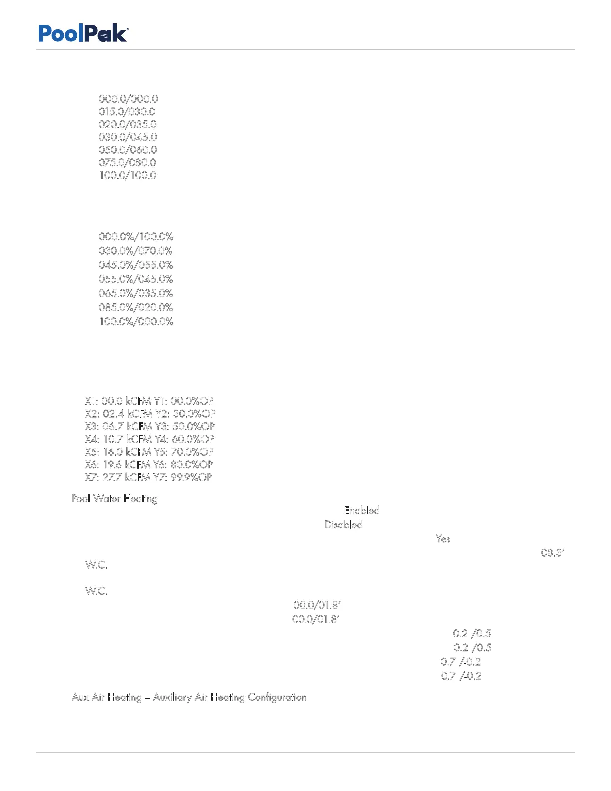 • Circ B Min PD – Circuit B Minimum Water Flow Pressure Differential in order to run pool water heating – 08.3’