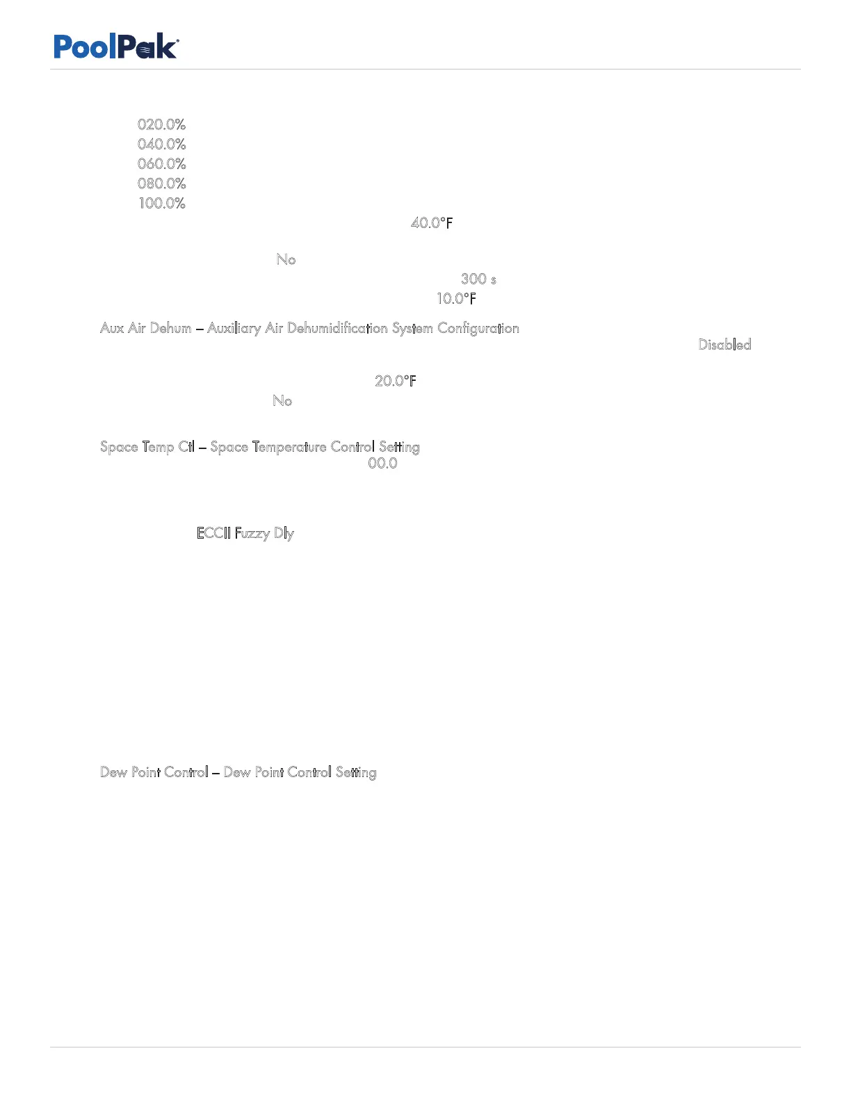 dehumidification system will be enabled – 20.0°F (Range 0 to 50.0F)