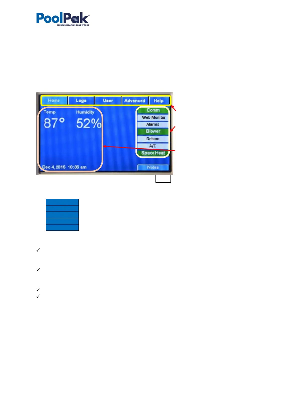 Alarms, dehumidifier operational calls, etc.)