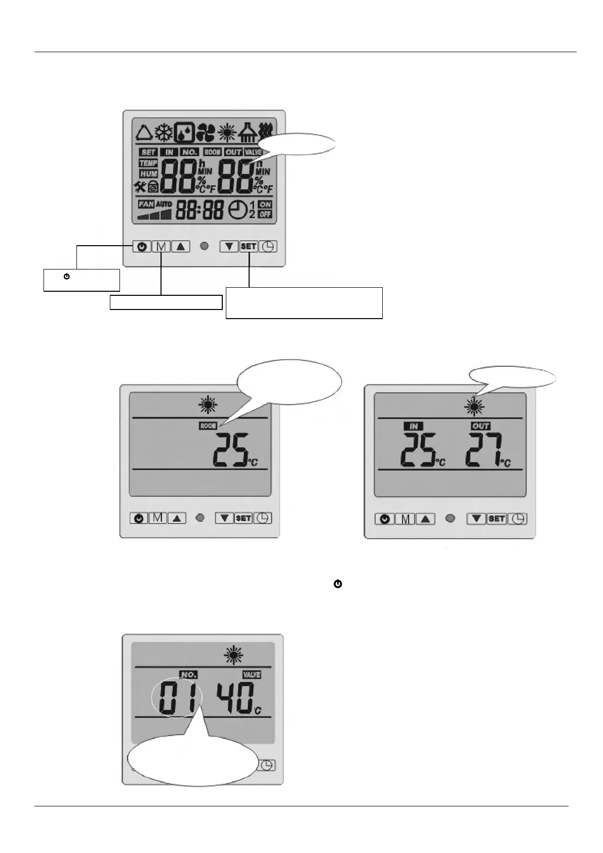 Ensure the unit is in “OFF” Status (above) by pressing Power Button O on far left of LCD remote. Keep pressing “SET”