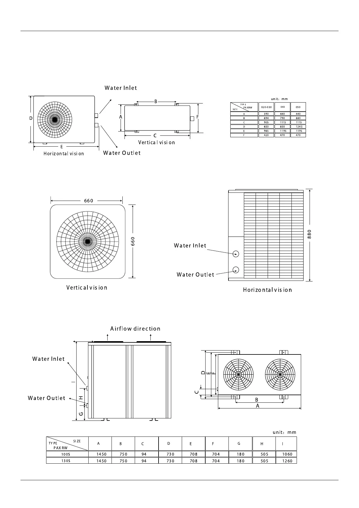 2.2 Dimensions for Swimming Pool Heat Pump Unit