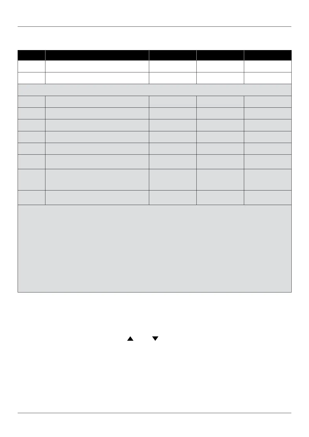 • To enter parameters 02–09 both “ “ and “ “ must be pushed together for three seconds.