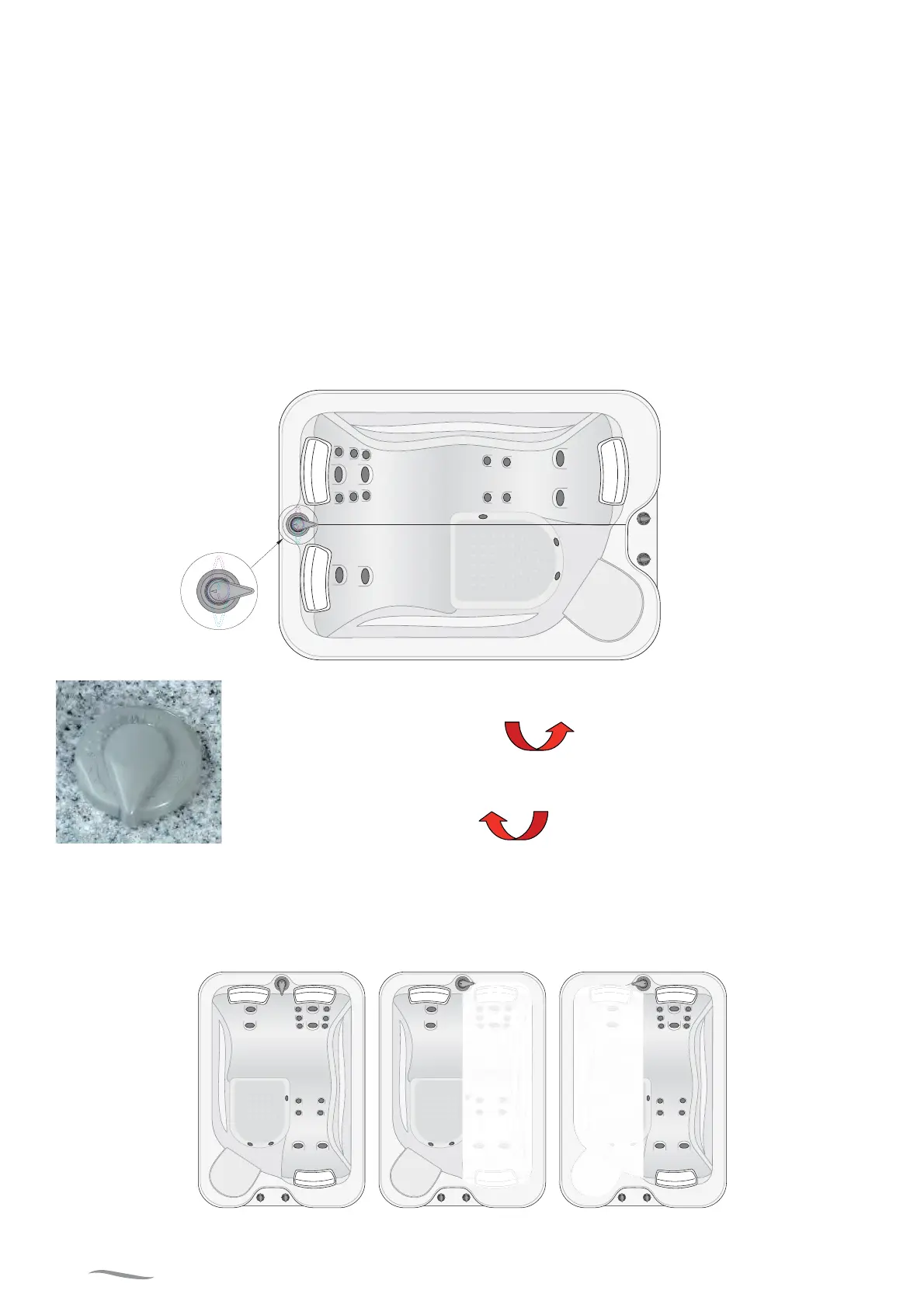 Hydromassage intensity is decreased by turning the regulator knobs clockwi-
