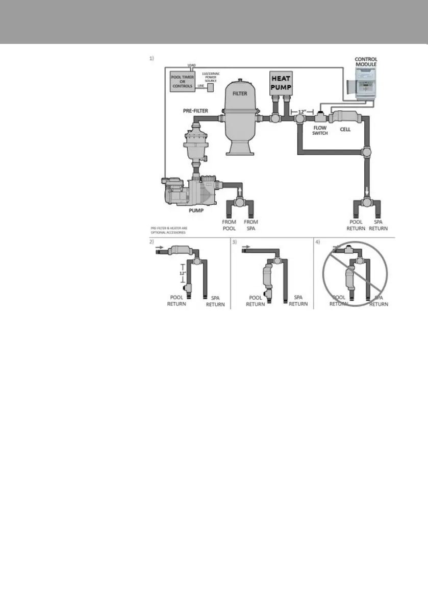 The chlorinator’s cell must be installed on the return circuit downstream from the lter and any
