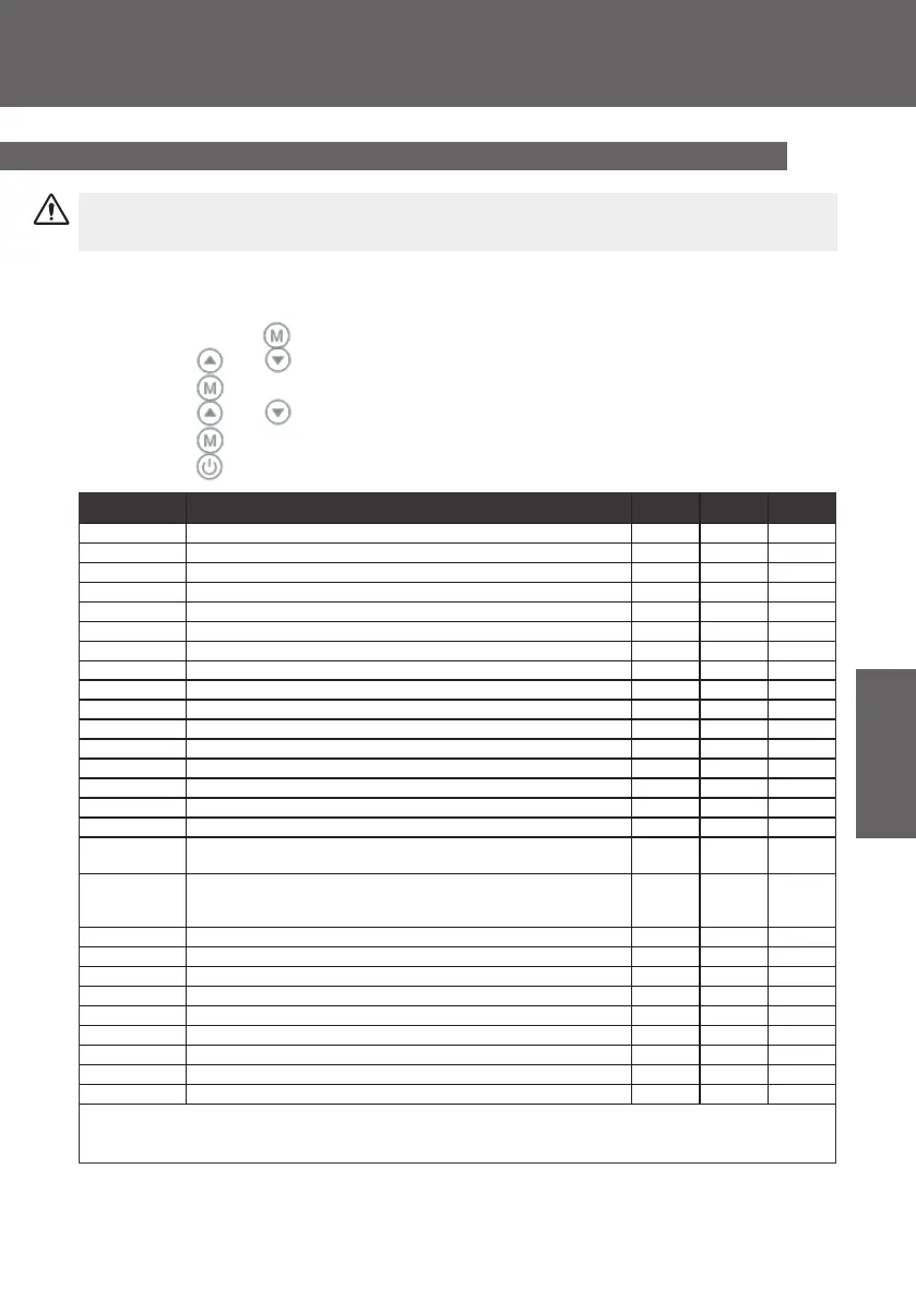 F45 Compressor operation cycle of entering the defrosting 1~240 Min 40