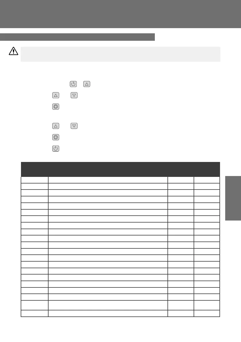 Adjustment of temperature dierence for restart(cooling mode) 0°C~15°C 2°C