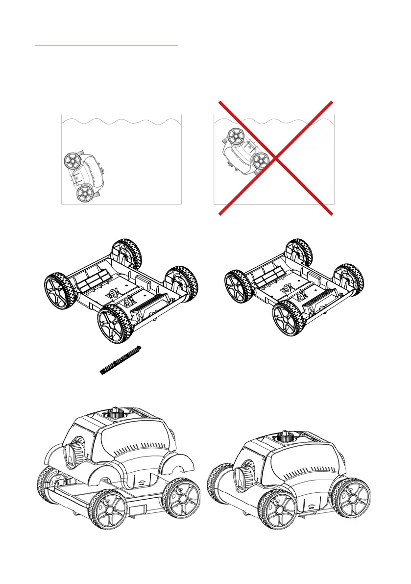 a. Put into or lift out from pool with the cleaner bottom toward the wall to avoid any possible scratch to