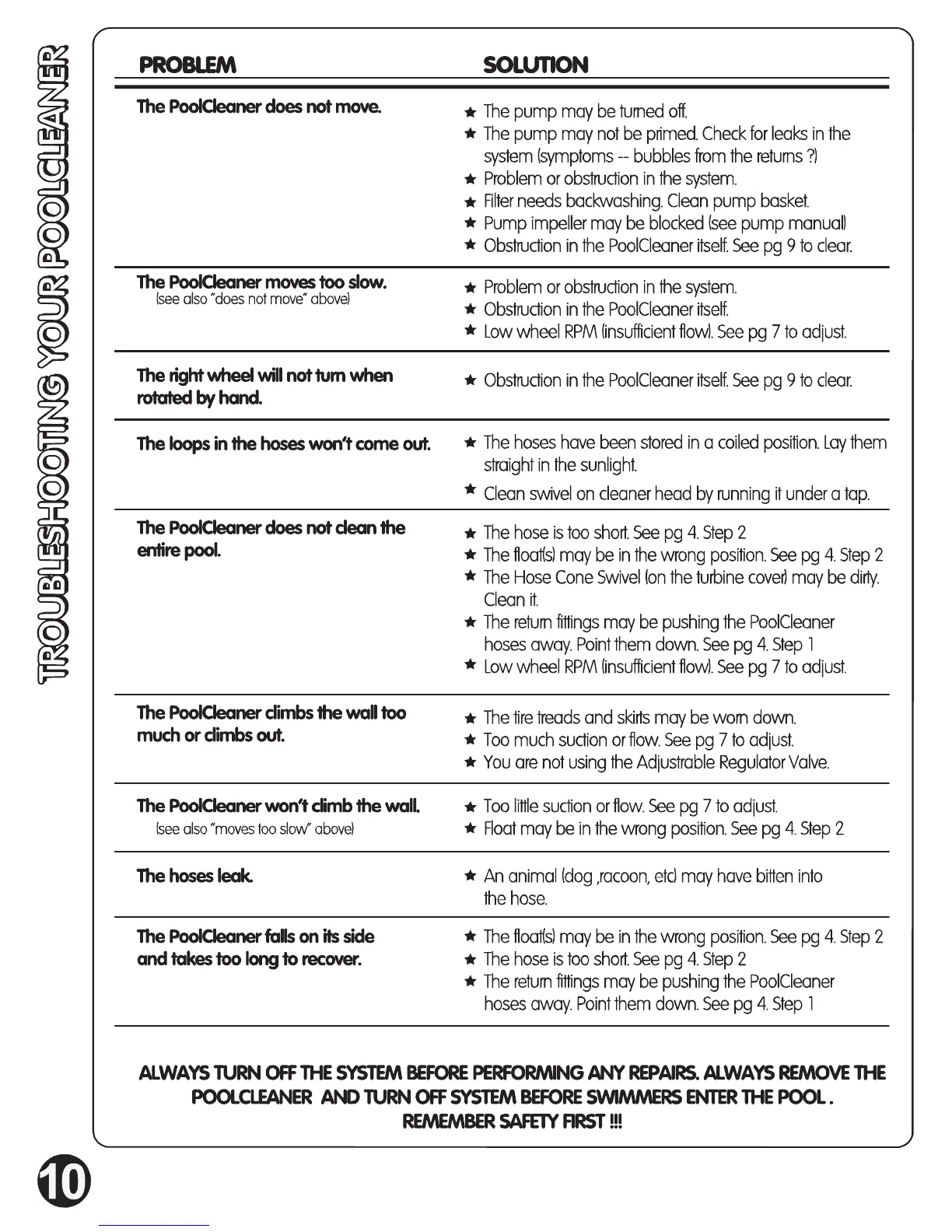 Poolvergnuegen 2X PoolCleaner - Troubleshooting Common Issues; Problem Diagnosis and Solutions