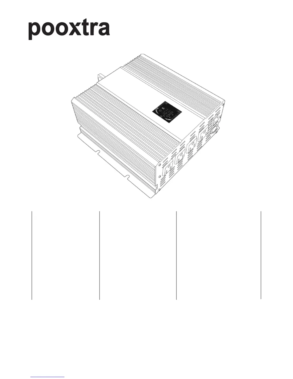 If your Pooxtra Inverter shows no AC output, the load level bar is flashing, and a buzzer is sounding, it's likely due to an overload or short circuit. First, reduce the load or disconnect the appliance causing the overload. Check for and remove any shorts in the wiring. To reset the inverter, switch it OFF, wait 3 minutes, and then switch it back ON after addressing the cause of the overload or short circuit. Note that models with remote control cannot be reset using the remote's ON/OFF button; you must use the switch on the inverter itself.