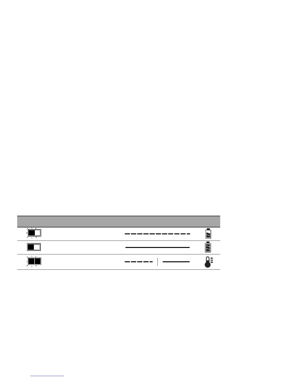Refer to the table below for the state of charge of the battery pack.