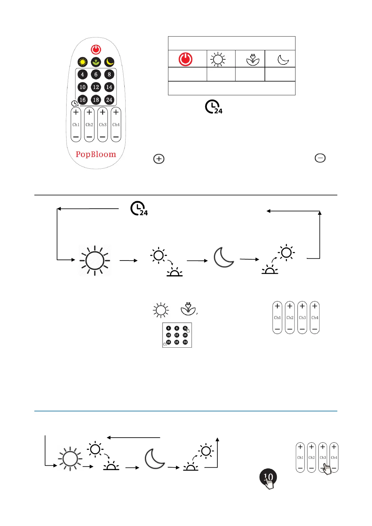 1. Set “Sunlight” by choosing or , or set each channel via