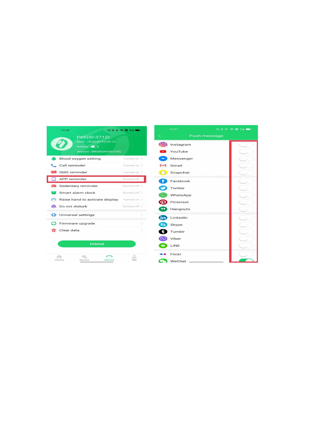the app, there are 2 settings that you can follow to receive the