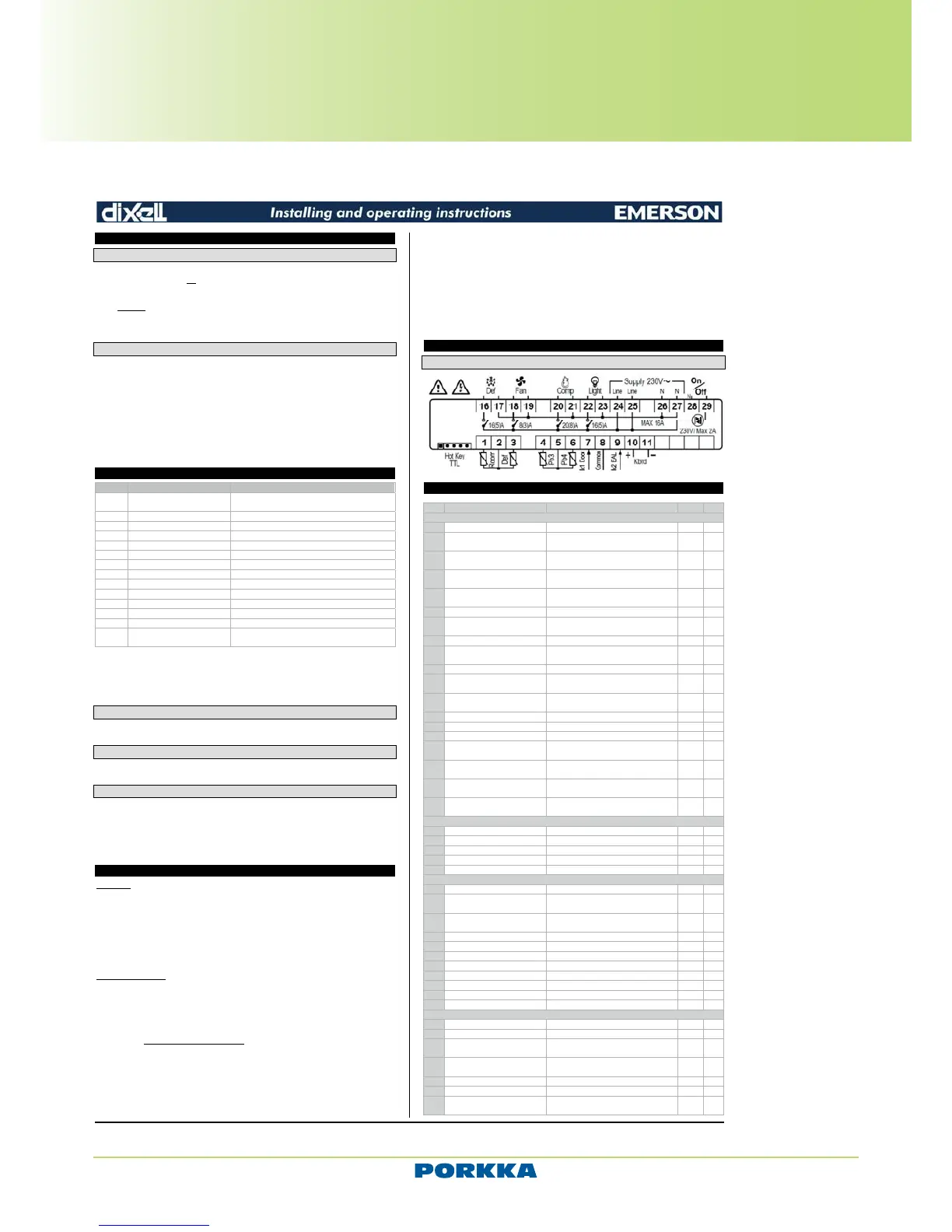 Defrost: relay SPST 20(8) A, 250Vac