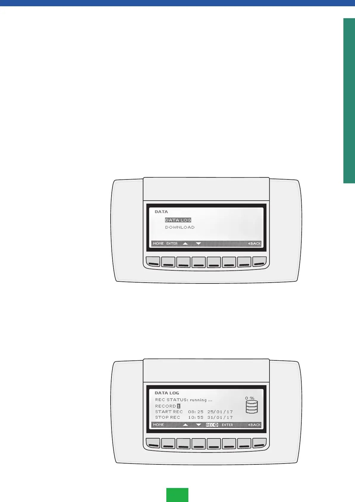 DATA LOG sisältää kaikki lämpötilatiedot, jotka säädin on tallentanut.
