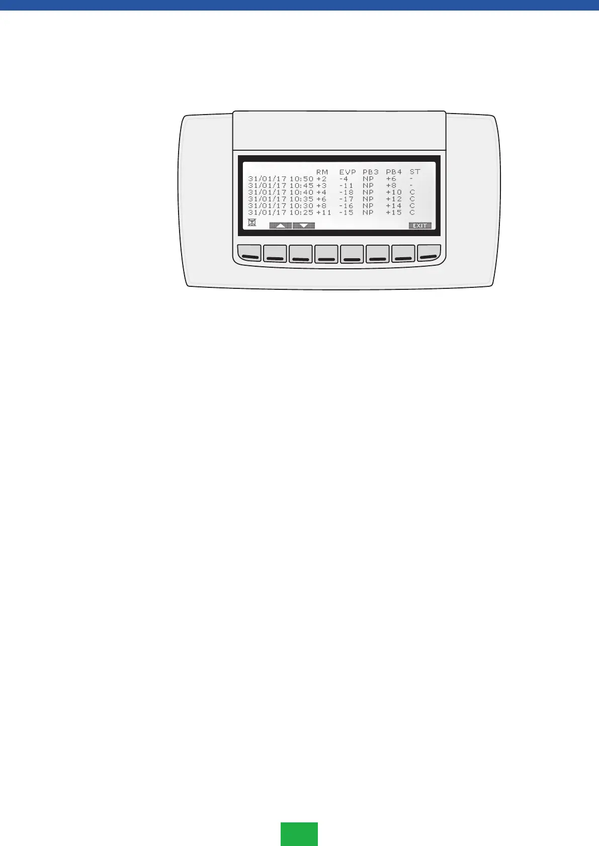 Det går att bläddra mellan alla registrerade data med UPP- och NED-pilarna.