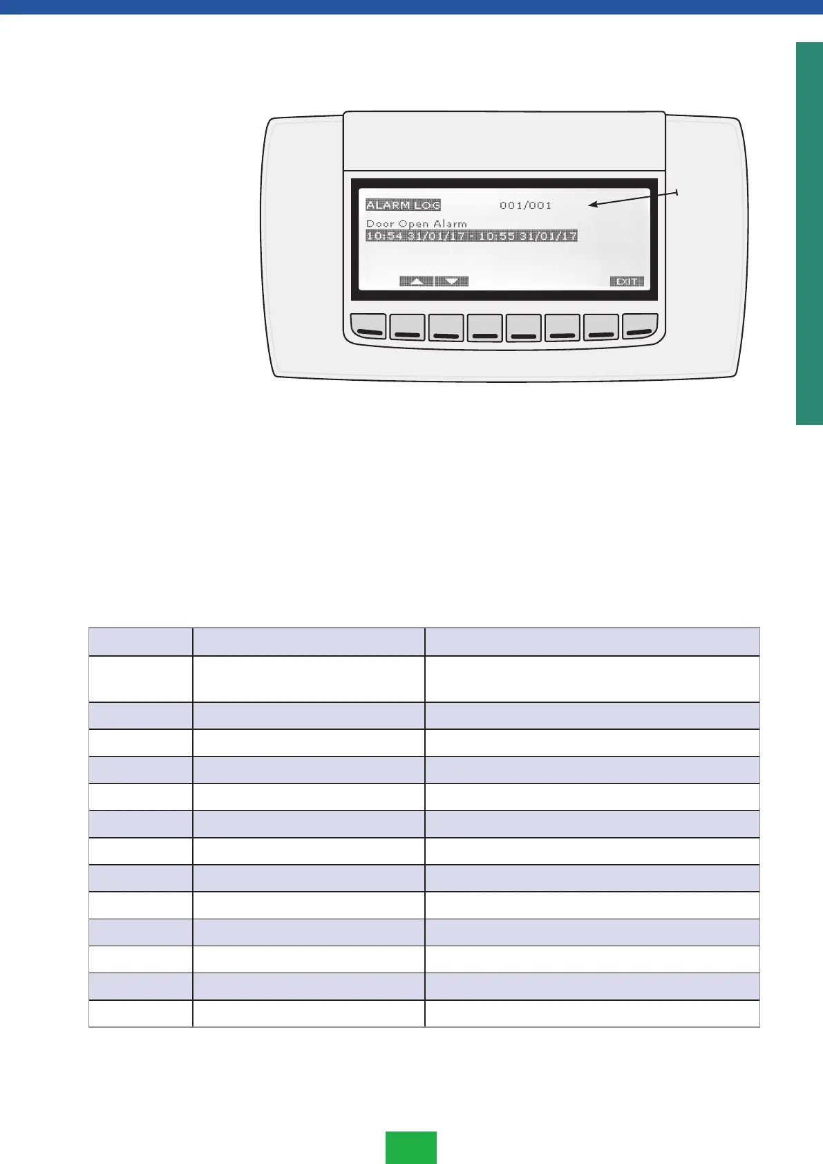 Paina EXIT, jolloin pääset takaisin ACTIVE ALARMS -valikkoon.