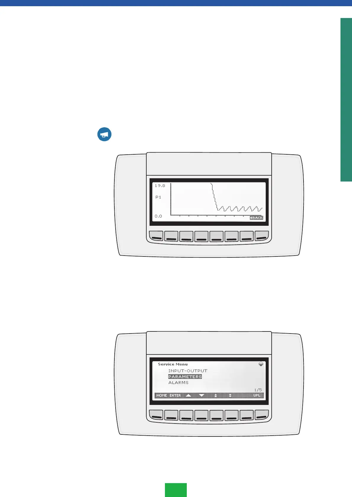 1. Siirry HUOLTOVALIKKOON painamalla SERVICE-painiketta.