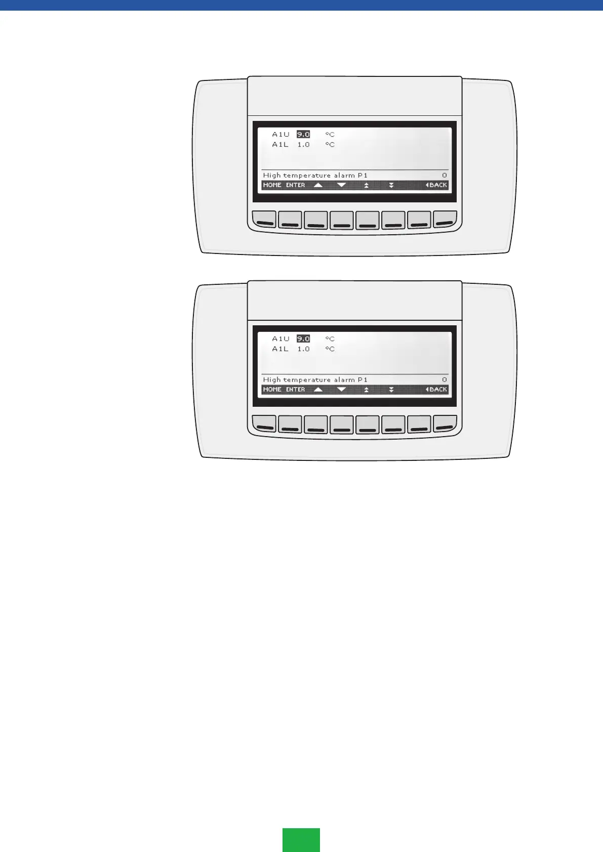 • A1H Alarm deviation range specifies how many degrees the temperature must alter