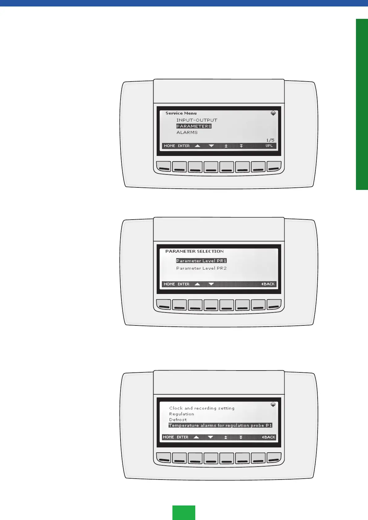 4. Välj CONTROL OF TEMPERATURE ALARMS OF THE GUIDING PROBE P1 med pilar och
