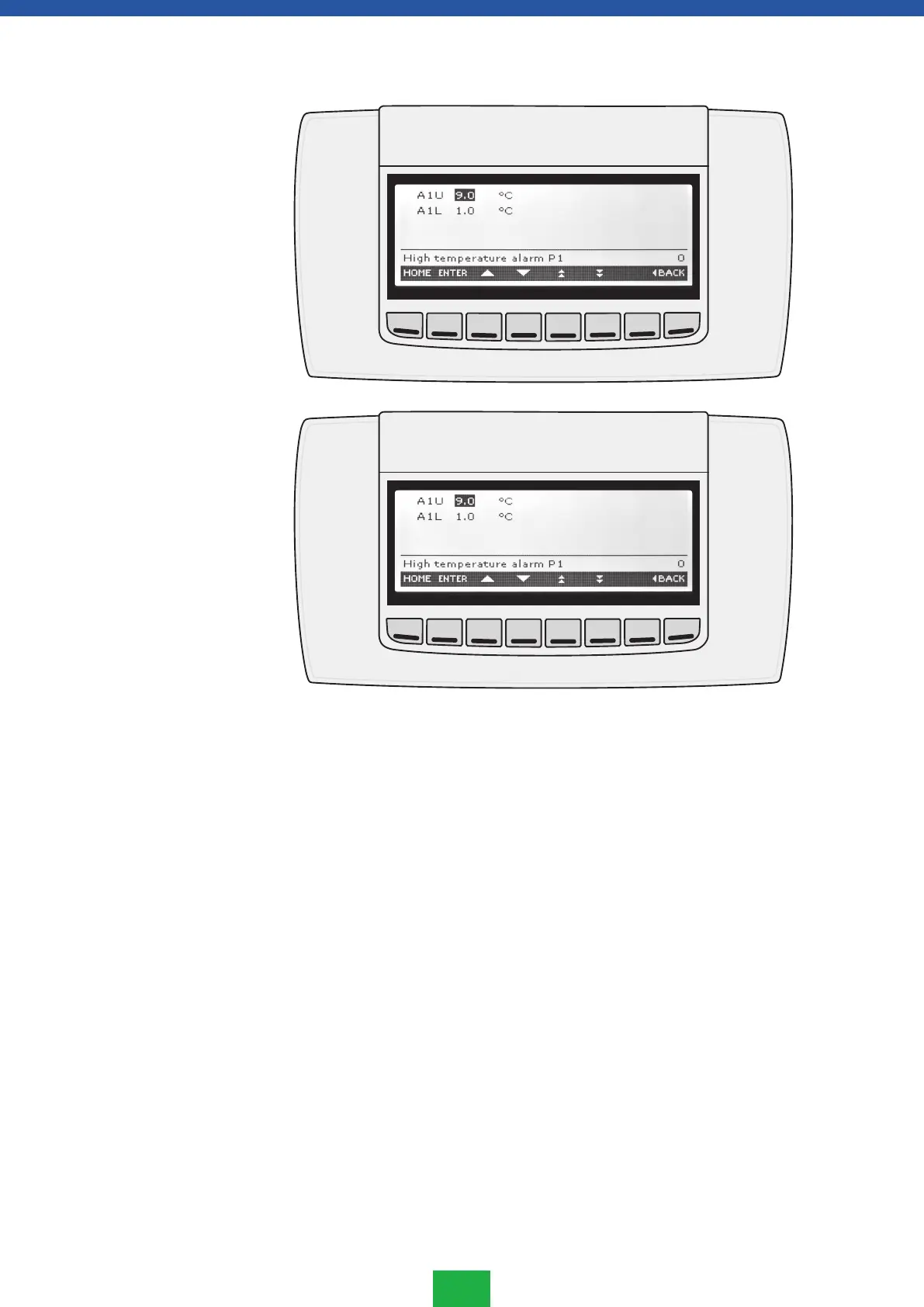 • A1L lågtemperaturlarmsnivå, antingen verklig temperatur eller differensen