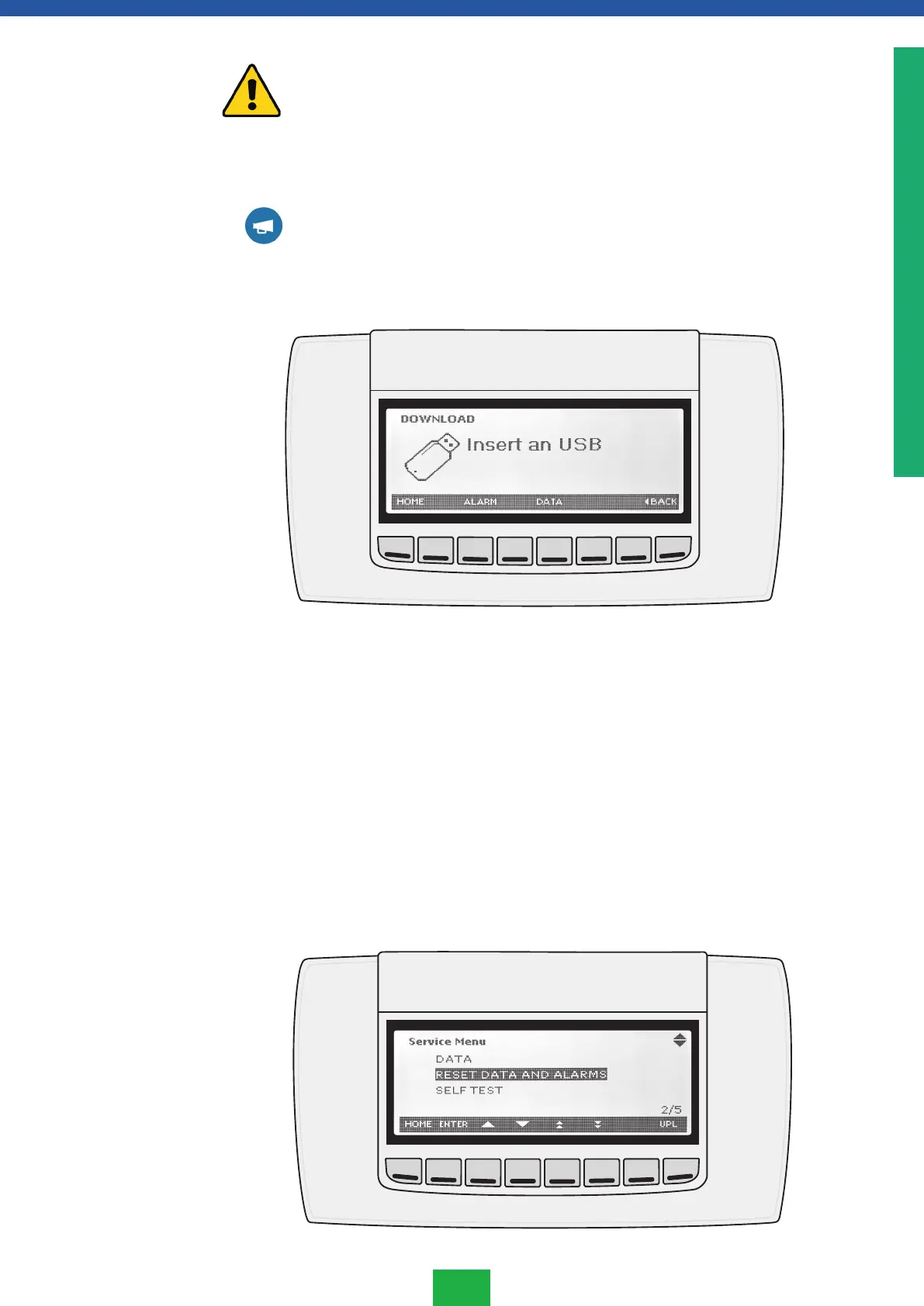 2. Velg undermenyen RESET DATA AND ALARM, og trykk på ENTER