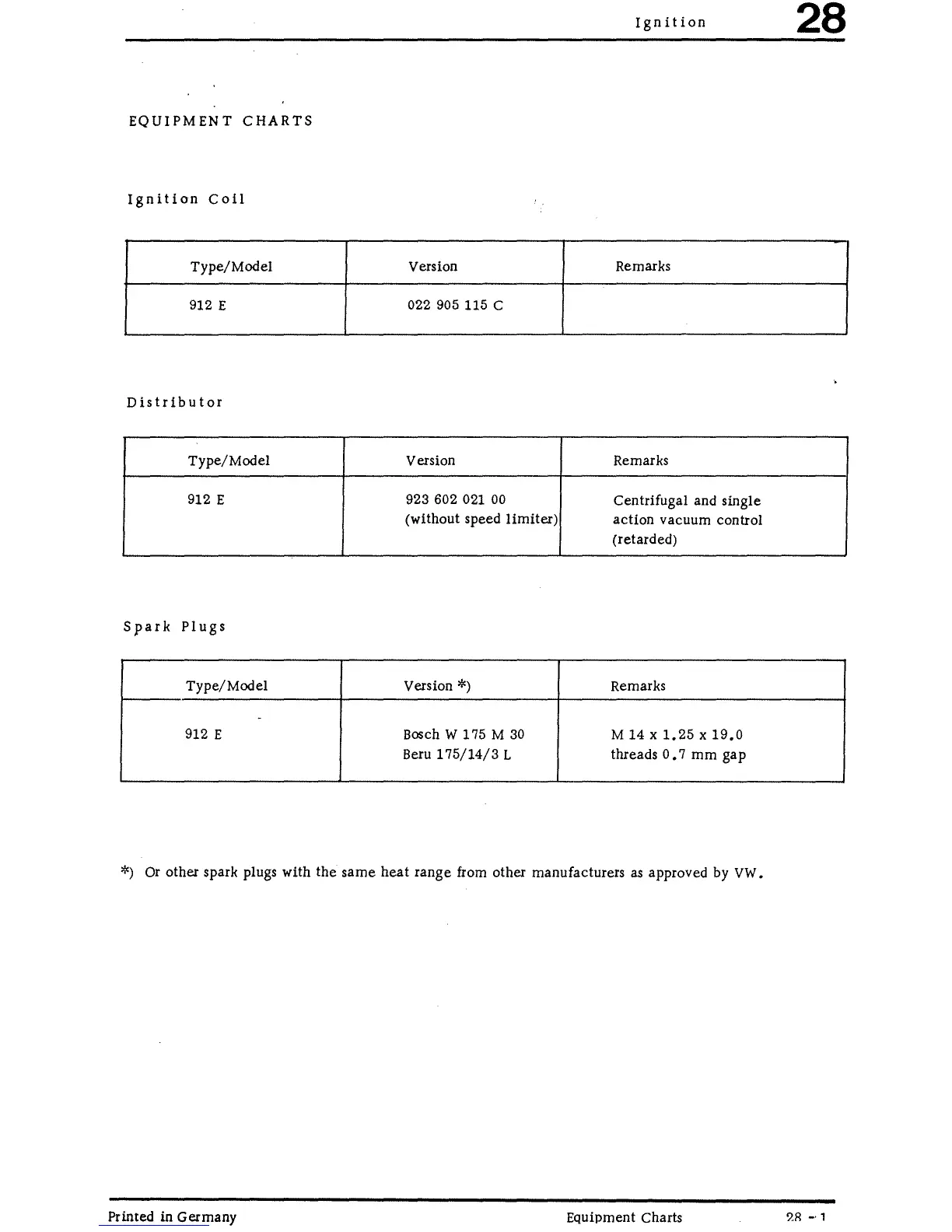 Porsche 912 E - Equipment Charts; Gauges, Instruments, and Radio