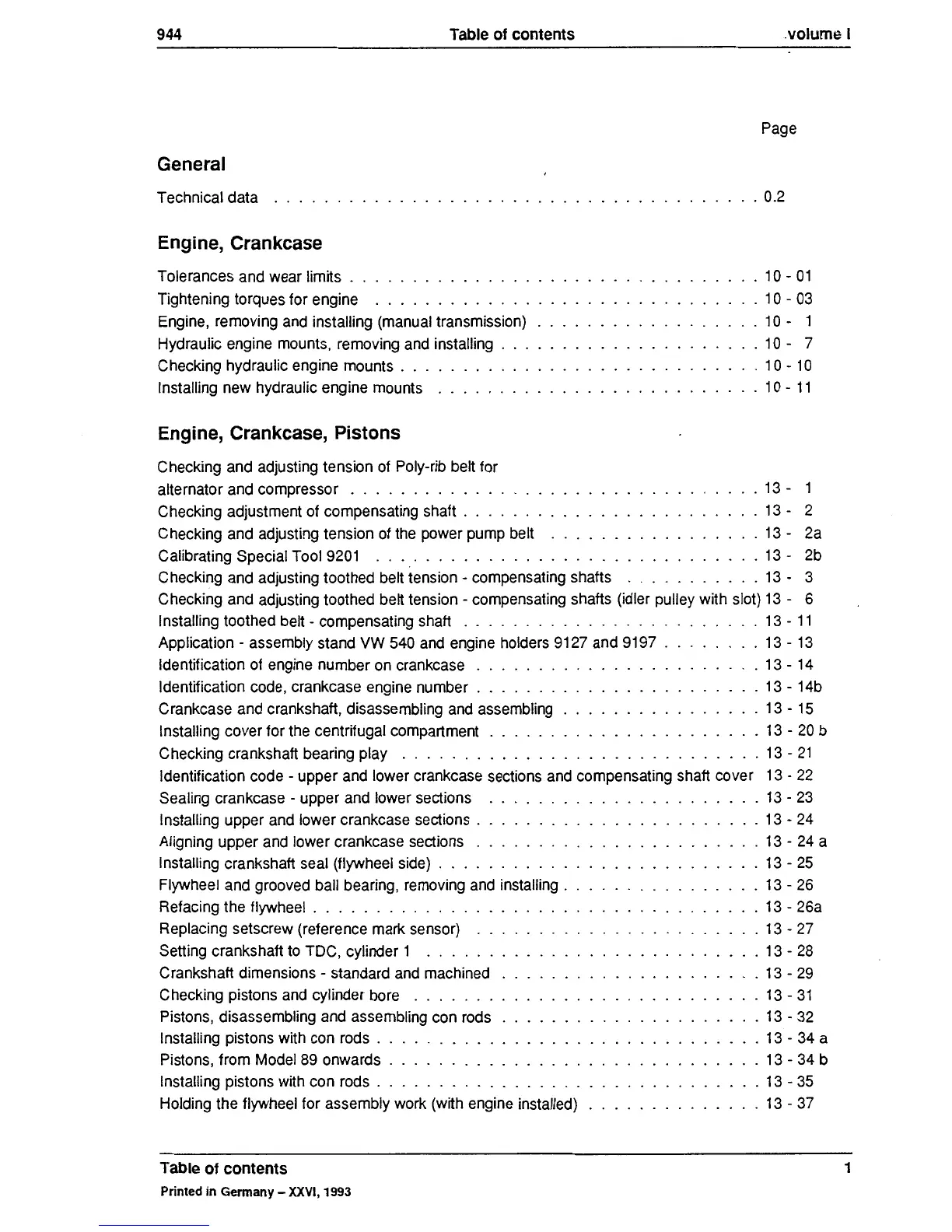 Identification code - upper and lower crankcase sections and compensating shaft cover 13 -
