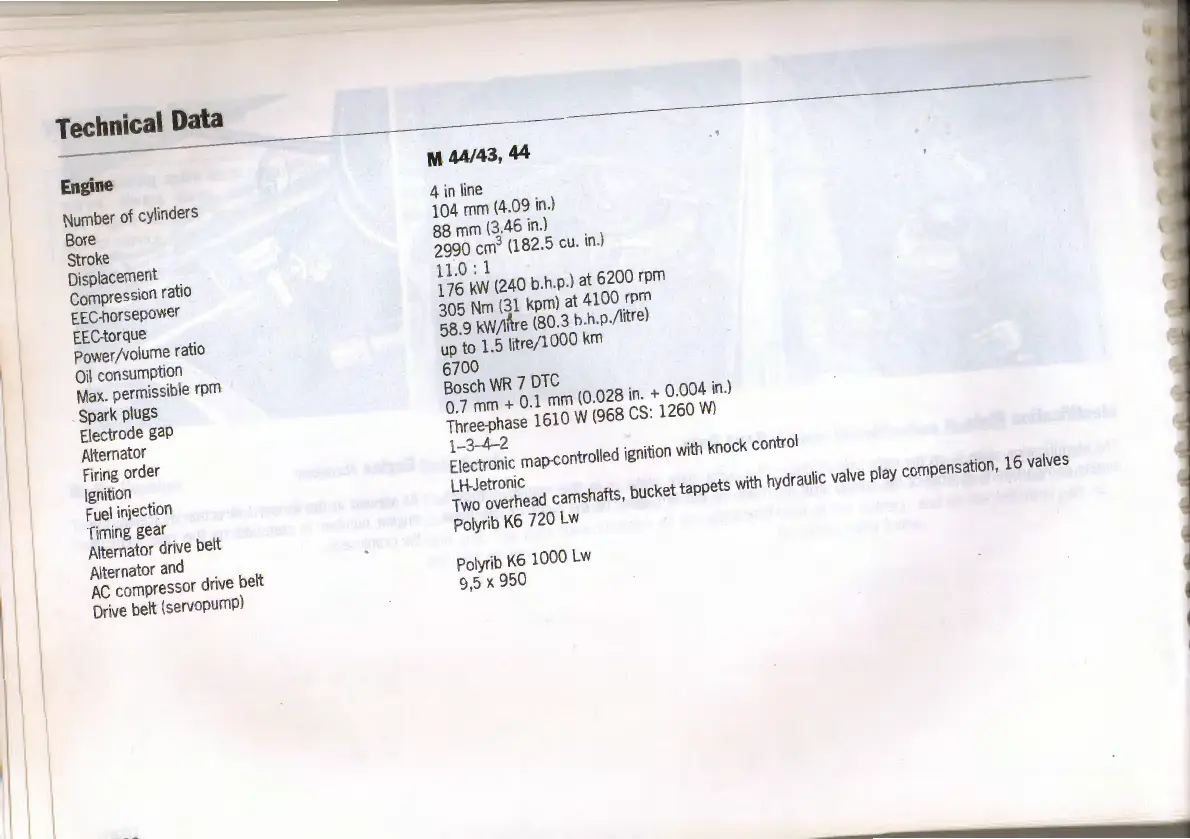 Porsche 968 - Technical Data: Engine Specifications; Engine Type M 44;43, 44 Details