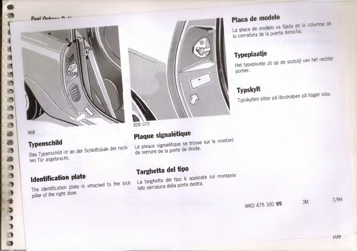 Porsche 968 - Vehicle Identification Plates; Multi-language Identification Labels