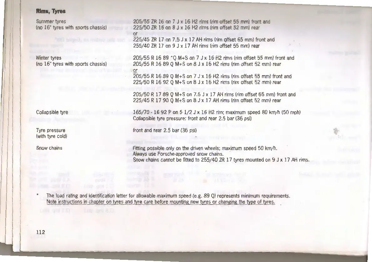 Porsche 968 - Rims and Tyres Specifications; Summer and Winter Tyre Sizes; Collapsible Tyre Information; Tyre Pressure Recommendations
