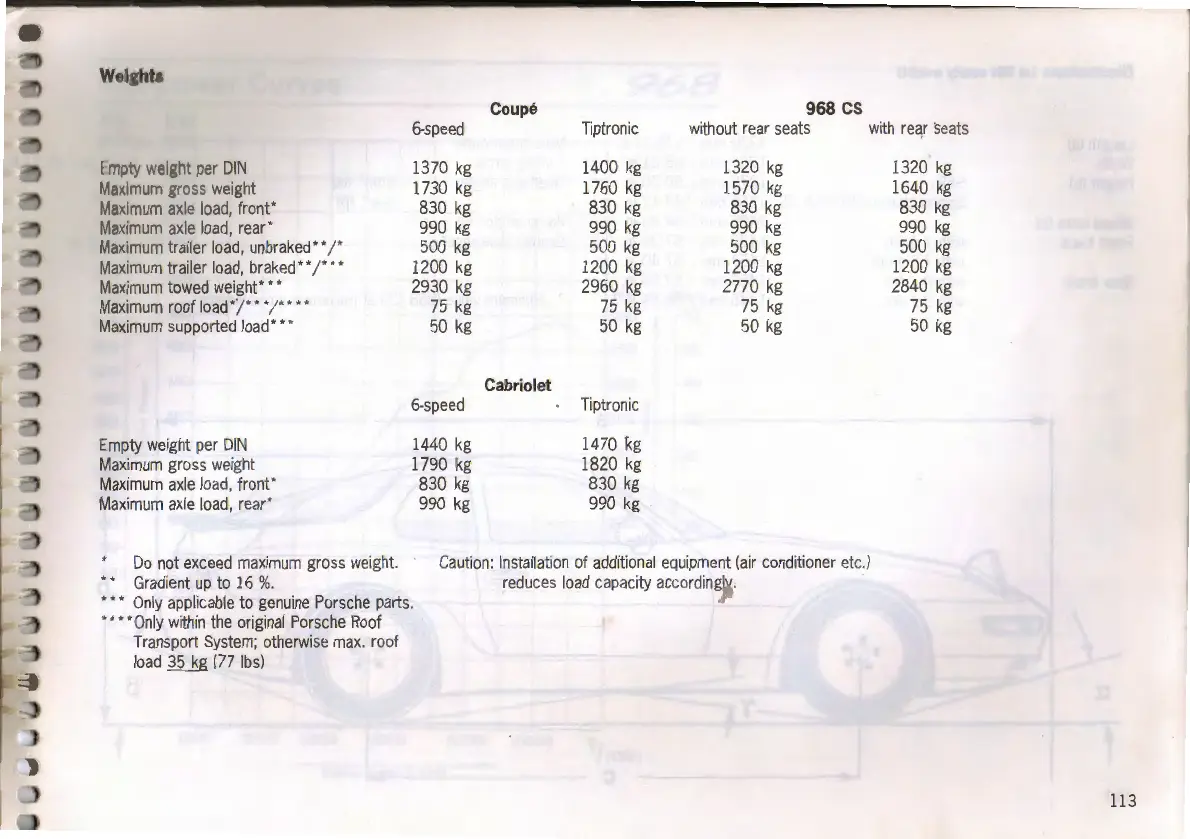 Porsche 968 - Vehicle Weights; Weight Specifications by Model