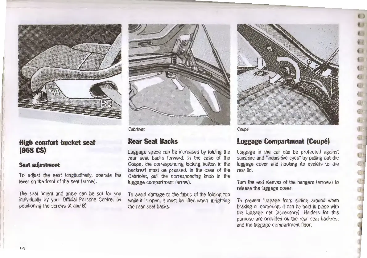 Porsche 968 - High Comfort Bucket Seat (968 CS); Seat Adjustment Procedure; Rear Seat Backs and Luggage Compartment; Folding Rear Seat Backs