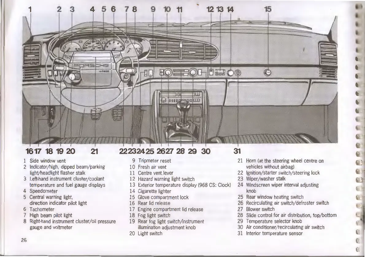 Porsche 968 - Instruments and Controls Overview; Dashboard Control Identification