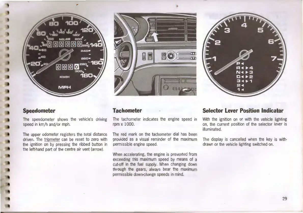 Porsche 968 - Vehicle Instruments and Indicators; Speedometer and Odometer; Tachometer Functionality; Selector Lever Position Indicator