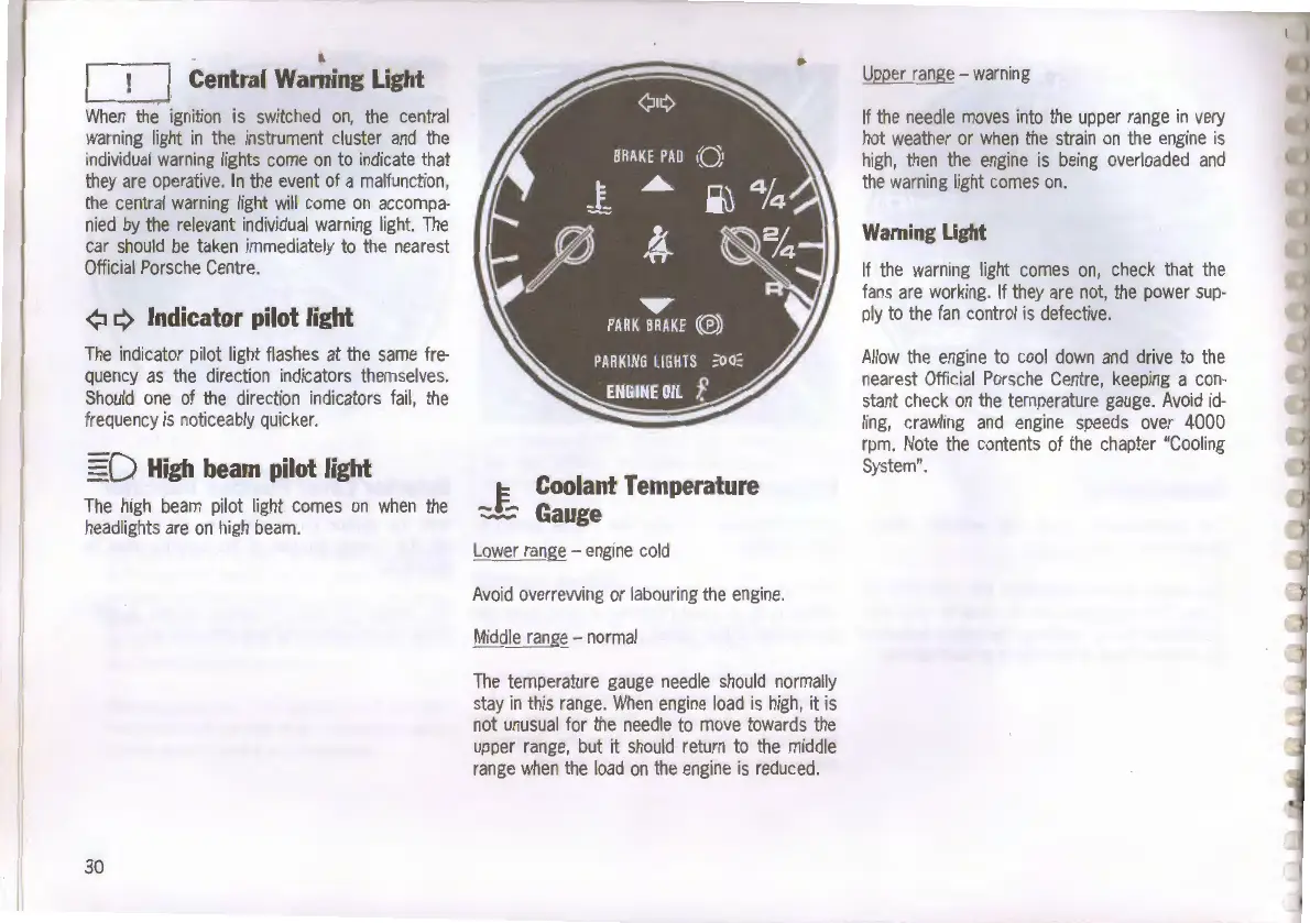 Porsche 968 - Instrument Cluster Warning Lights and Gauges; Central Warning Light Function; Indicator Pilot Light Behavior; High Beam Pilot Light Indicator