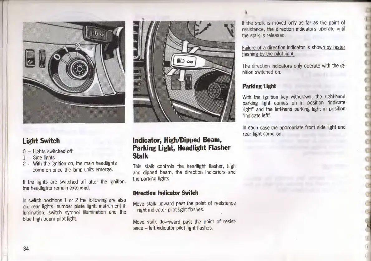 Porsche 968 - Lighting Controls; Light Switch Operation; Indicator, Beam, and Flasher Stalk; Direction Indicator Switch