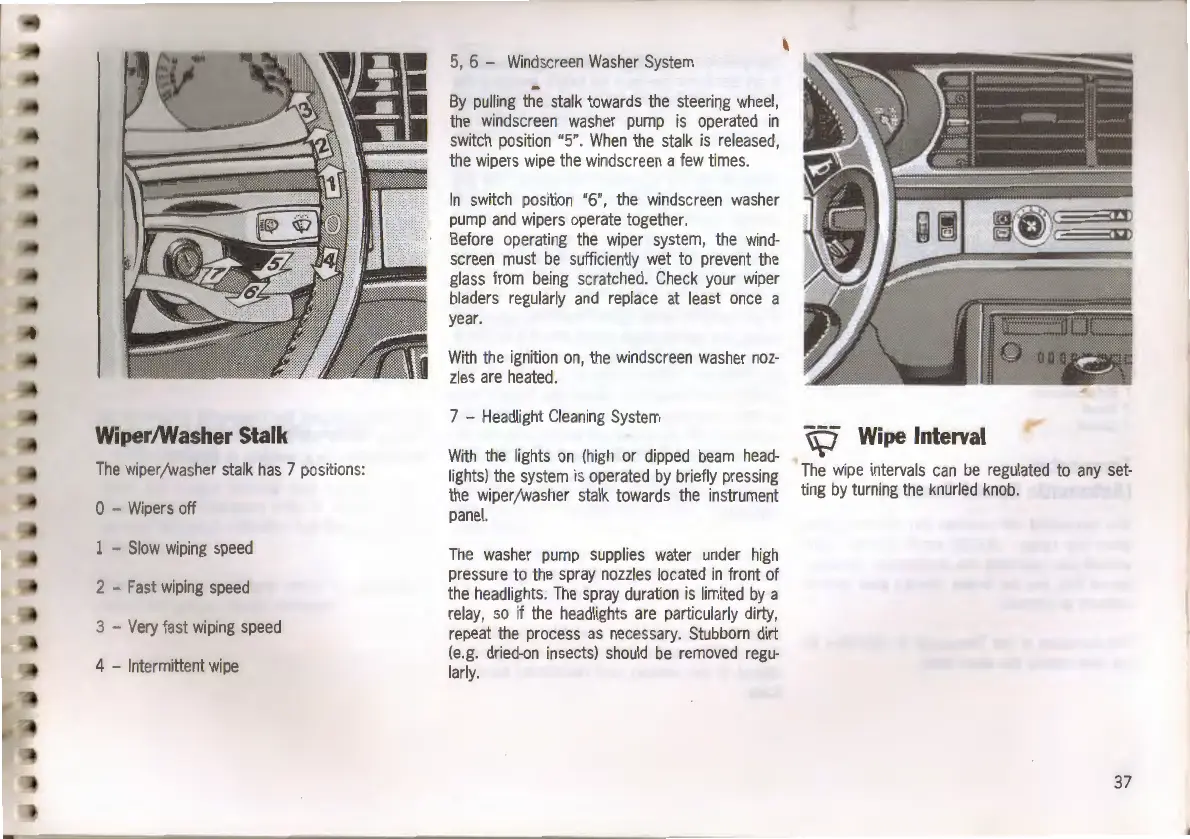 Porsche 968 - Wipers and Washer Systems; Wiper;Washer Stalk Operation; Windscreen Washer System; Headlight Cleaning System