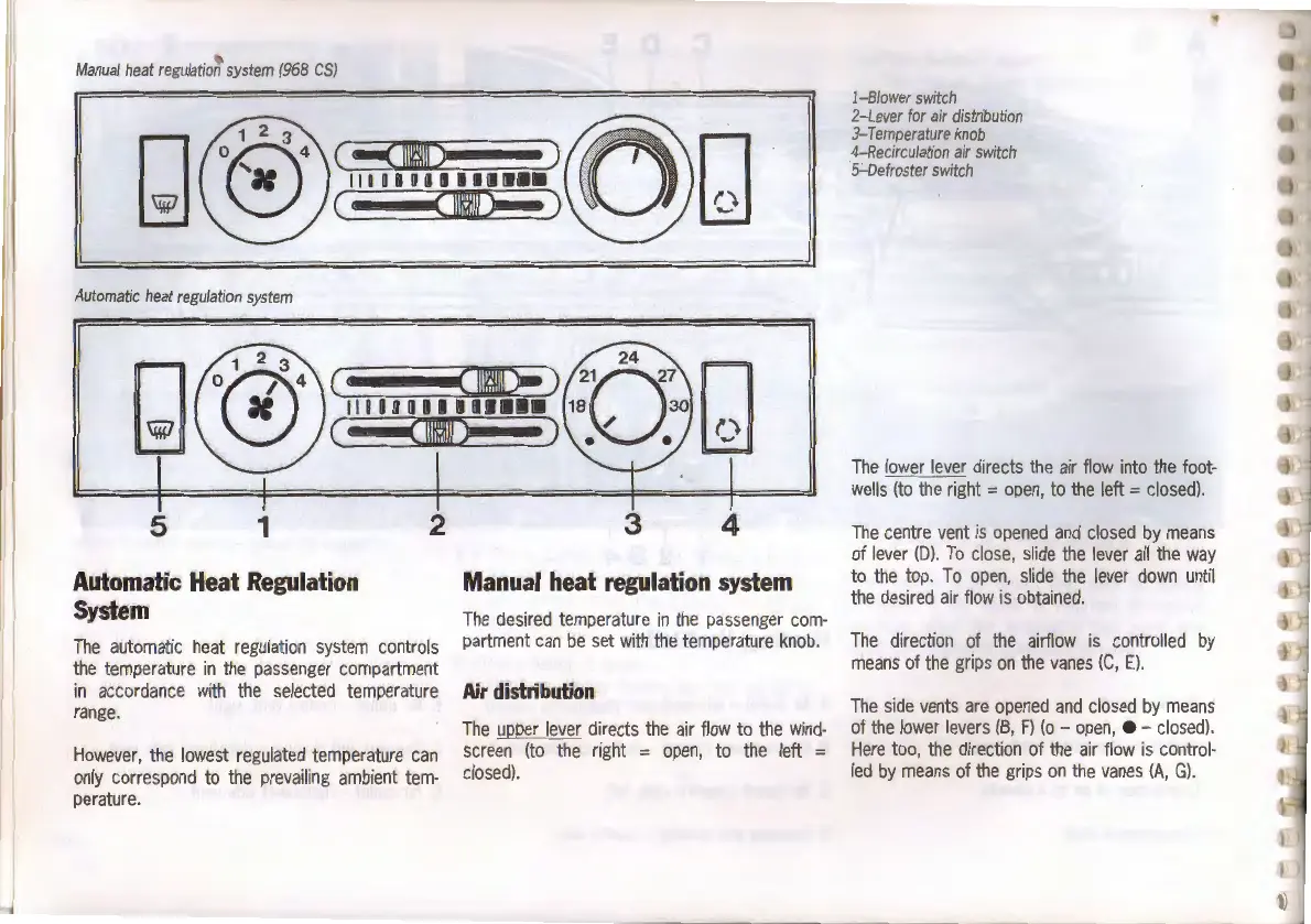 Porsche 968 - HVAC System Operation Details; Manual Heat Regulation System; Automatic Heat Regulation System; Air Distribution Levers