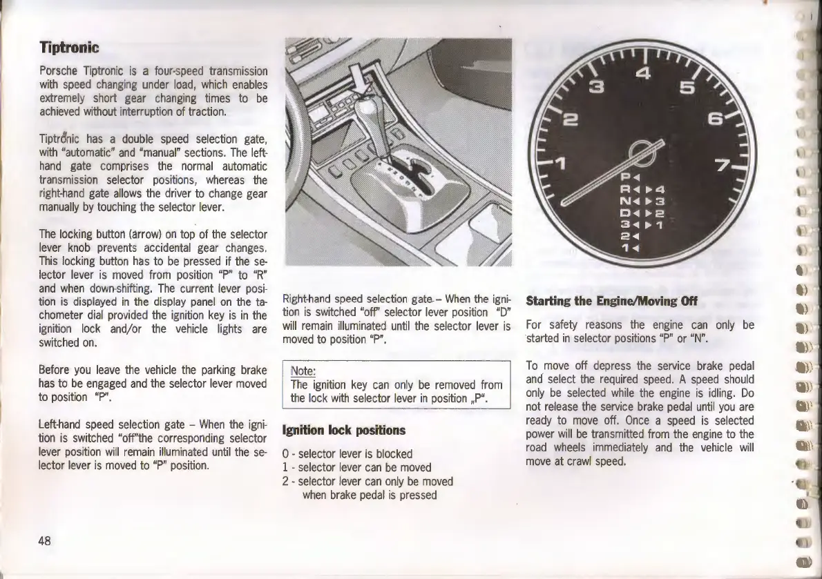Porsche 968 - Tiptronic Transmission System; Starting Engine and Moving Off