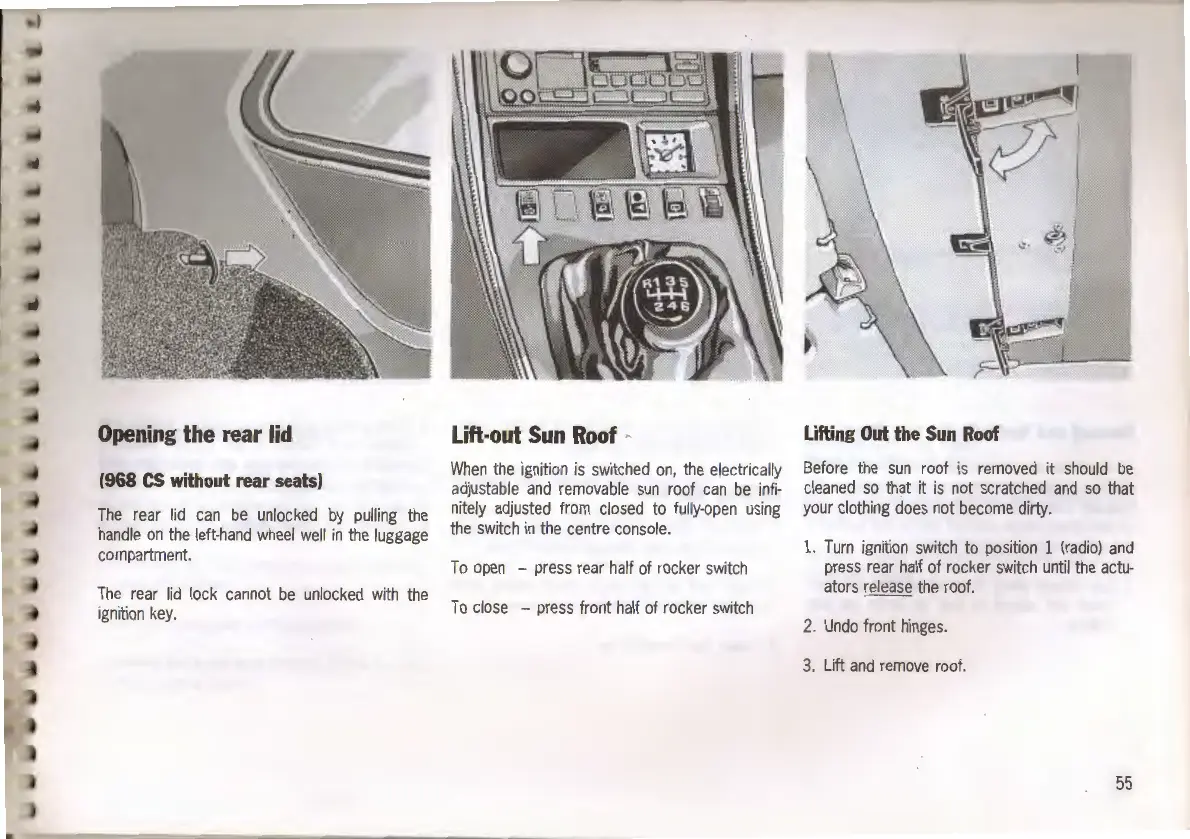 Porsche 968 - Rear Lid and Sun Roof; Opening Rear Lid (968 CS); Lift-out Sun Roof Operation; Lifting Out the Sun Roof