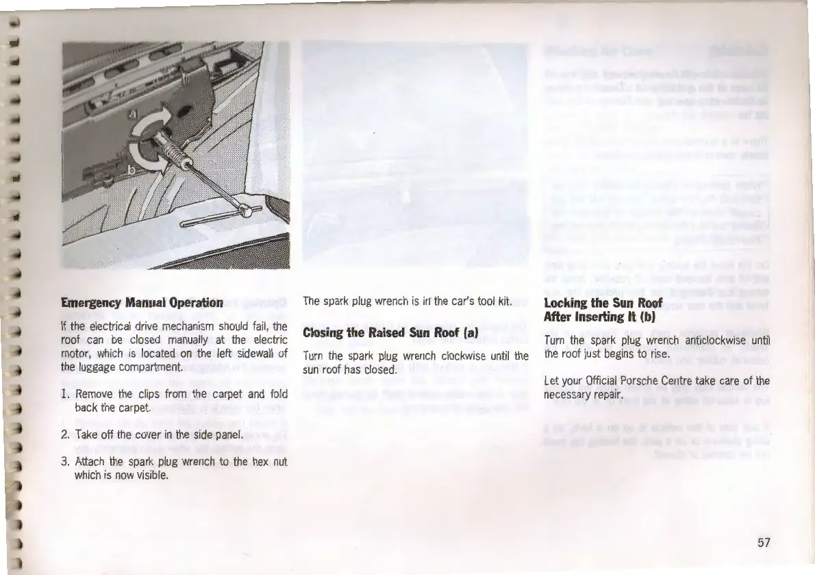 Porsche 968 - Sun Roof Emergency Operation; Manual Sun Roof Closing; Sun Roof Locking Procedure