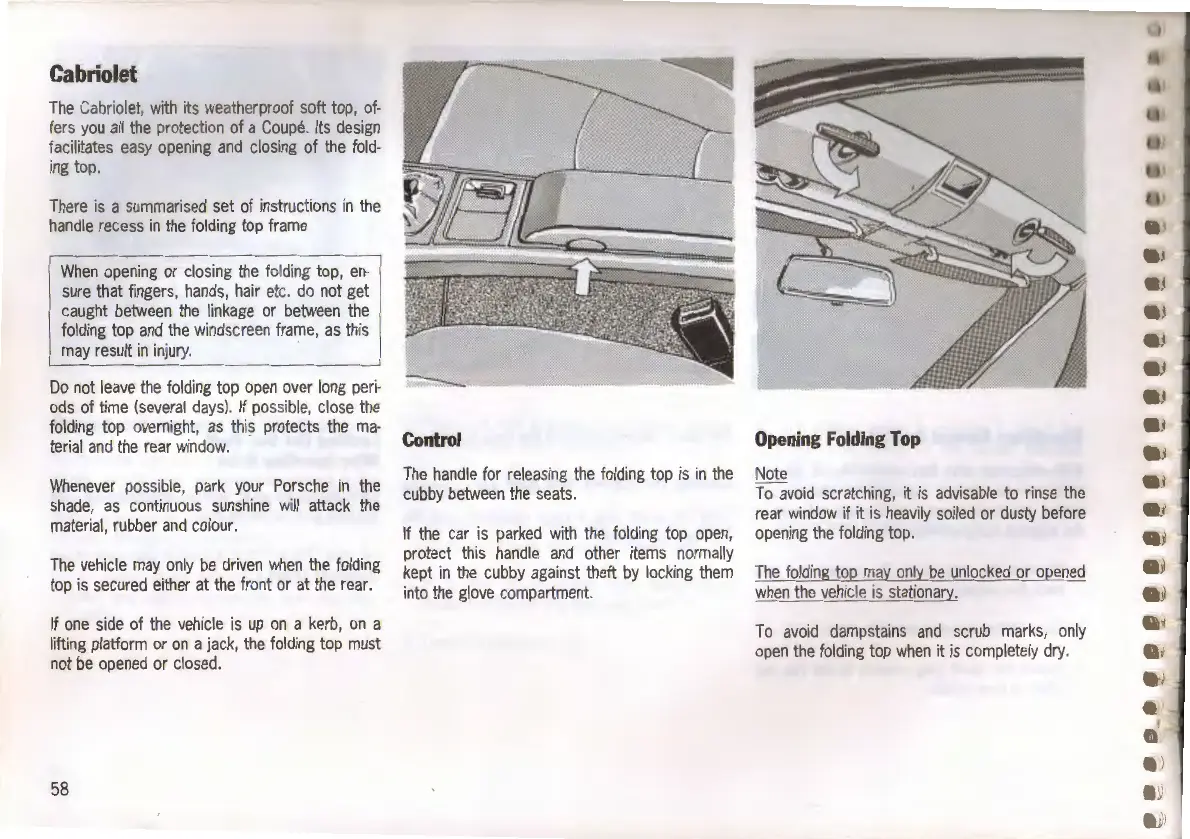 Porsche 968 - Cabriolet Features; Folding Top Control Handle; Opening the Folding Top