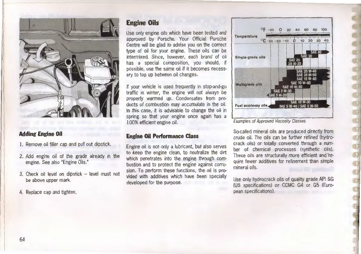 Porsche 968 - Engine Oil Information and Types; Adding Engine Oil Steps; Engine Oil Performance Classification