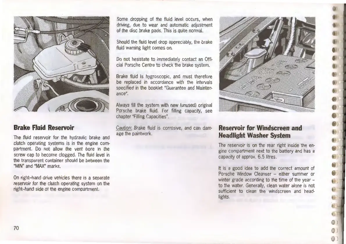 Porsche 968 - Fluid Reservoirs; Brake Fluid Reservoir Check; Washer System Reservoir Capacity