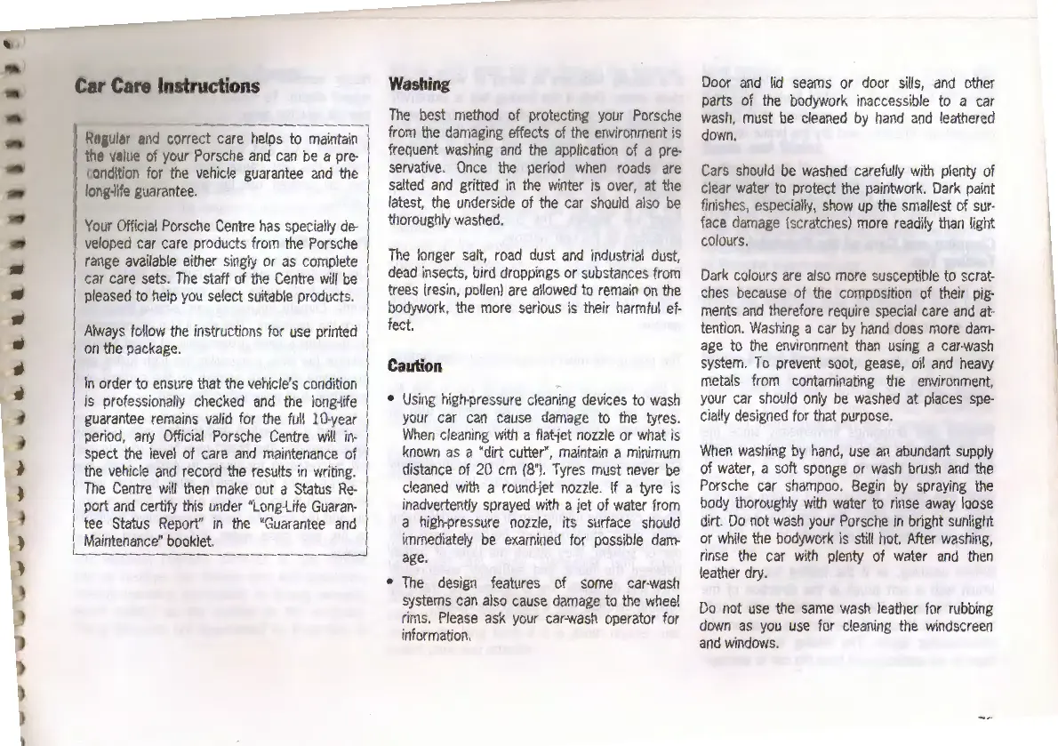 Porsche 968 - Car Care Instructions; Washing Procedures