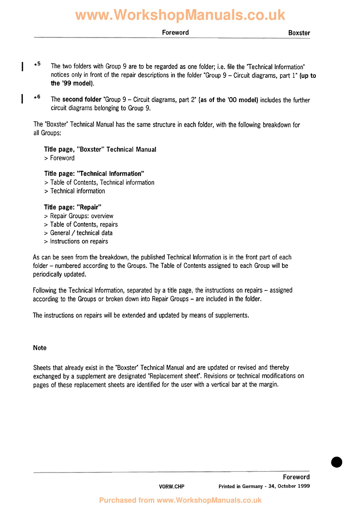 Sheets that already exist in the "Boxster" Technical Manual and are updated or revised and thereby