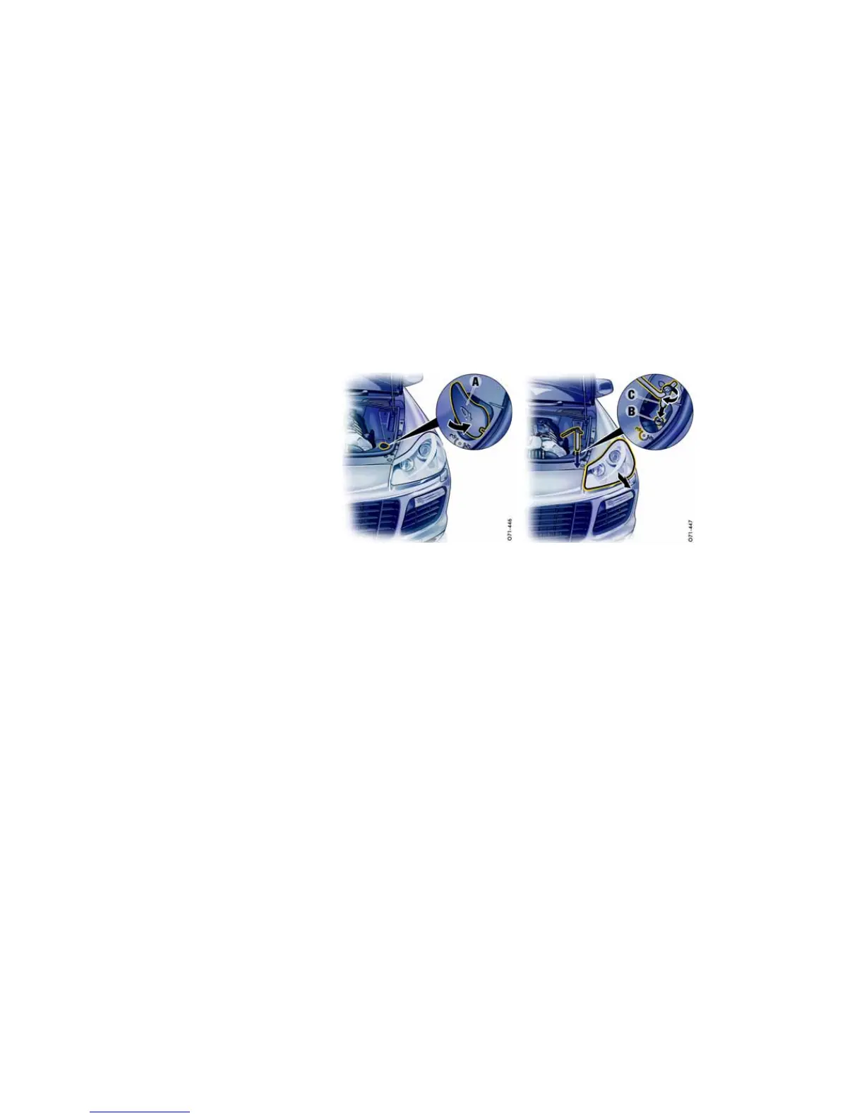 3. Press down cover A in the engine compart-