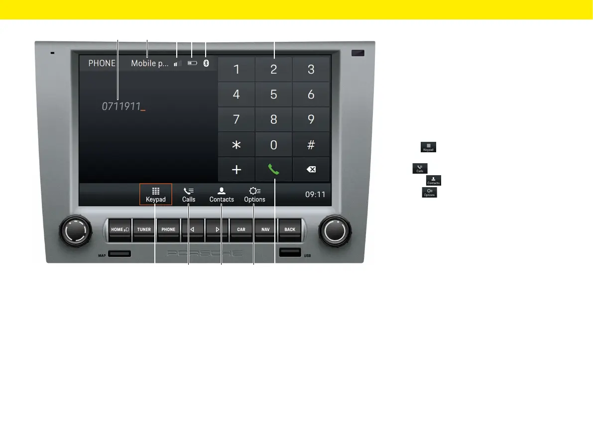 Porsche PCCM Plus - Bluetooth Phone Interface; Phone Keypad, Call List, and Contacts; Connection Status and Phone Manager