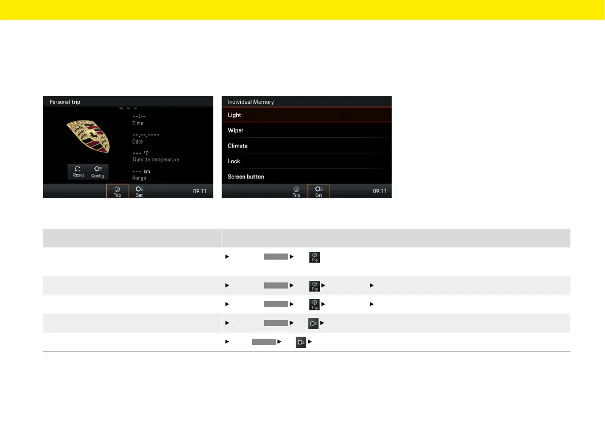 To toggle between the Personal trip, Trip since or Total trip buttons,