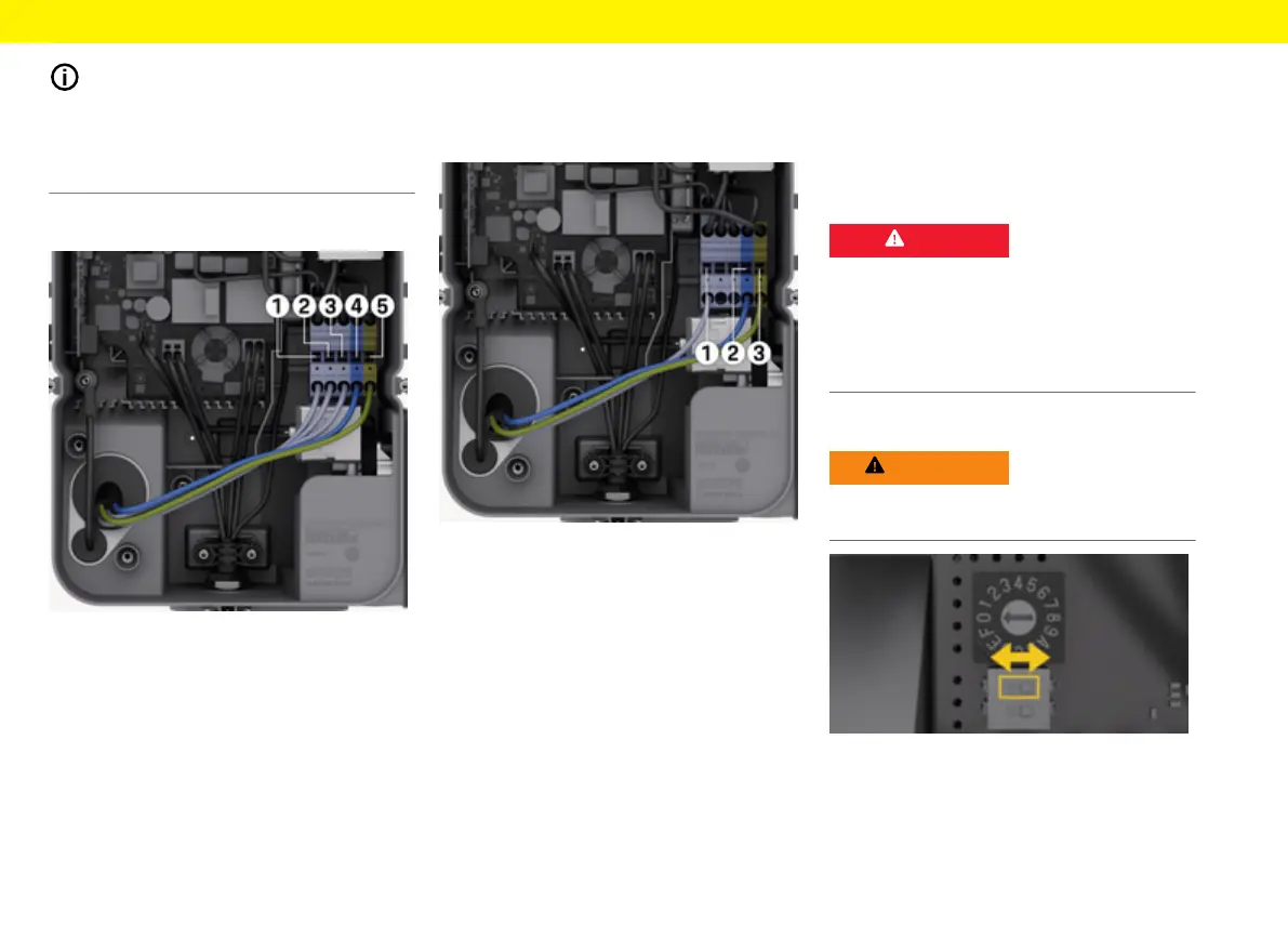 Wallboxen kan tilsluttes 1-faset eller 3-faset, se Ind-